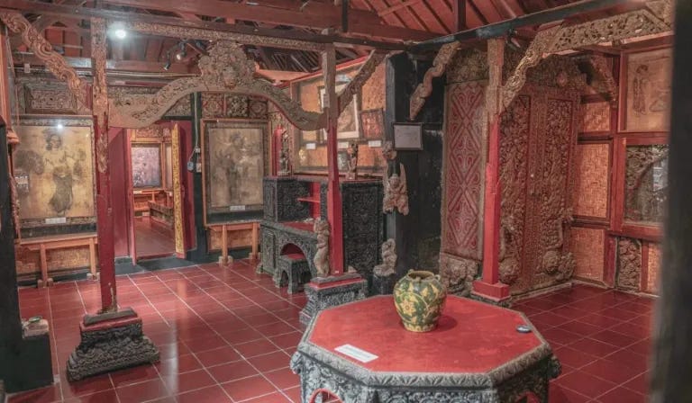 I couldn’t find information about an antique shop near the Bali Beach Hotel that was open in 1969, but there is a woman named Murni in nearby Ubud who has been an entrepreneur since 1974—she has guesthouses, a spa, restaurant, and shop. There’s an online store if you want to look at some lovely old ceremonial textiles, baskets, masks, and other antiques. Here’s a story about Adrien-Jean Le Mayeur and Ni Pollok—she died in 1985, and their home is still a museum.