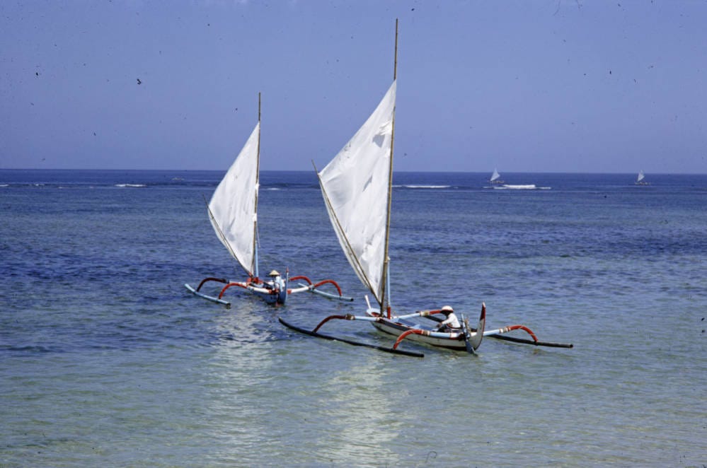 Here’s a 70s-era picture of outrigger canoes in Bali.