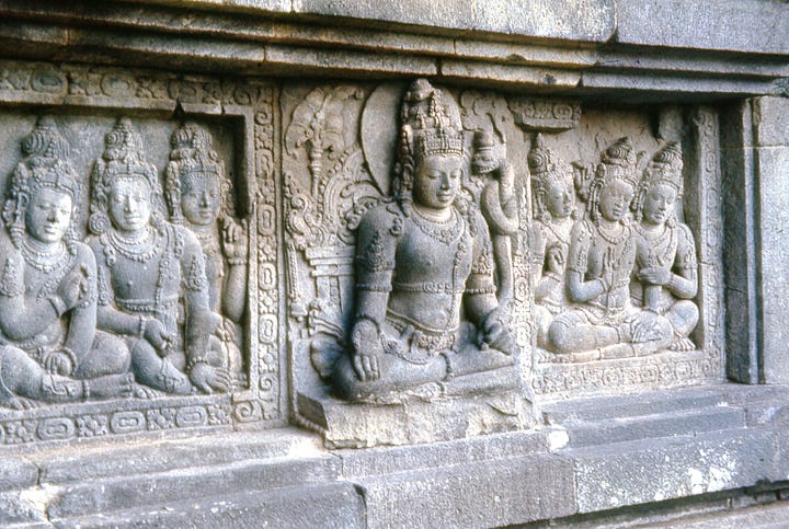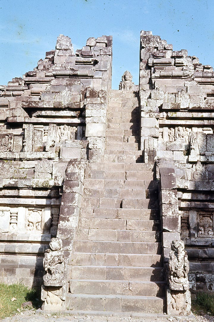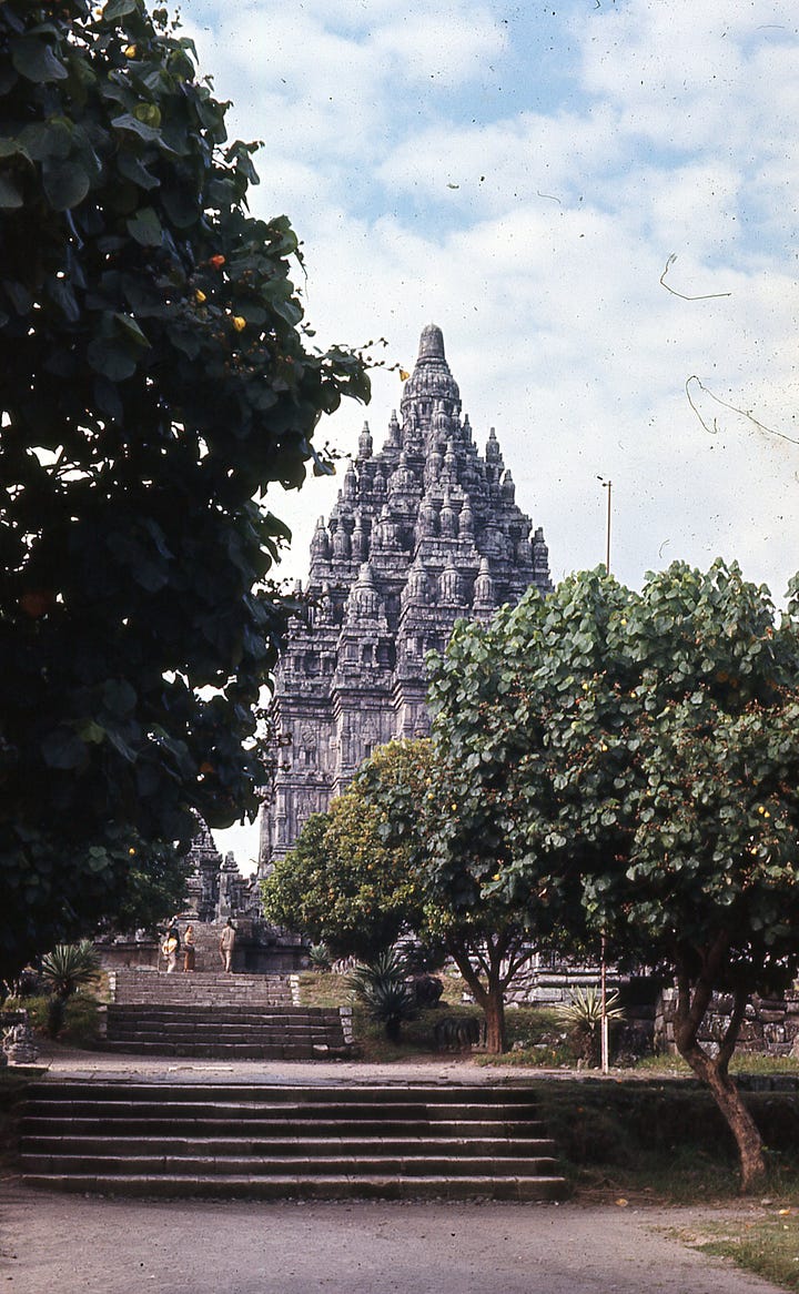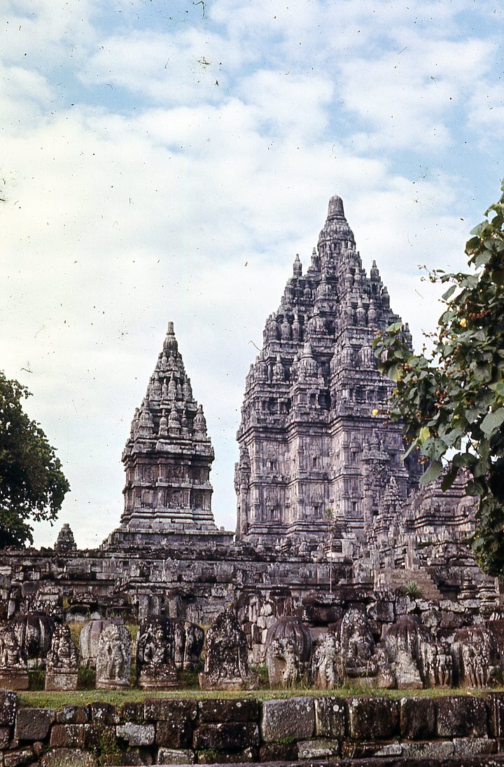 Early—7:00 a.m. we went to see the Prambanan Temples, near Jogjakarta. This complex is dedicated to Ciwa—8th century about same time as Borobodur. The carving was very light and delicate in comparison to many others we had seen.