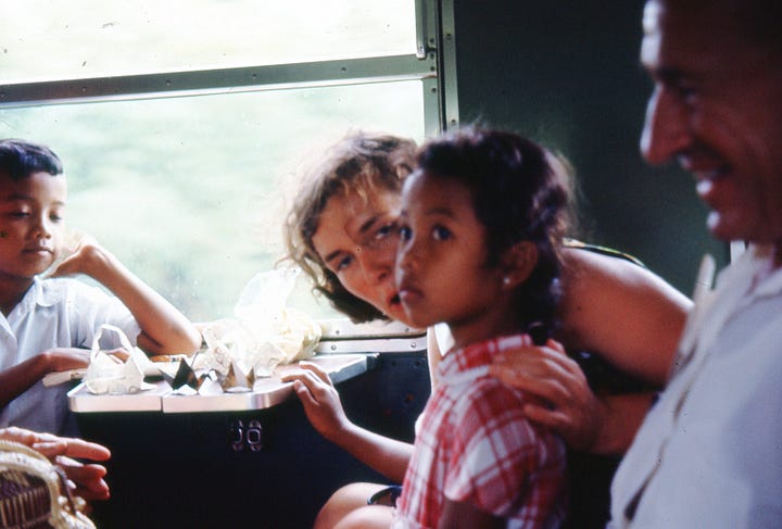 Apparently this was quite memorable! Her letter home includes most of this detail. In her letter she said “They cook all of the chicken, and I mean ALL. I ate some of the all and it wasn’t bad.” She took a few photos on the train. I did have a good laugh when I looked at her itinerary, which says “Departure by First Class train a compartment.”