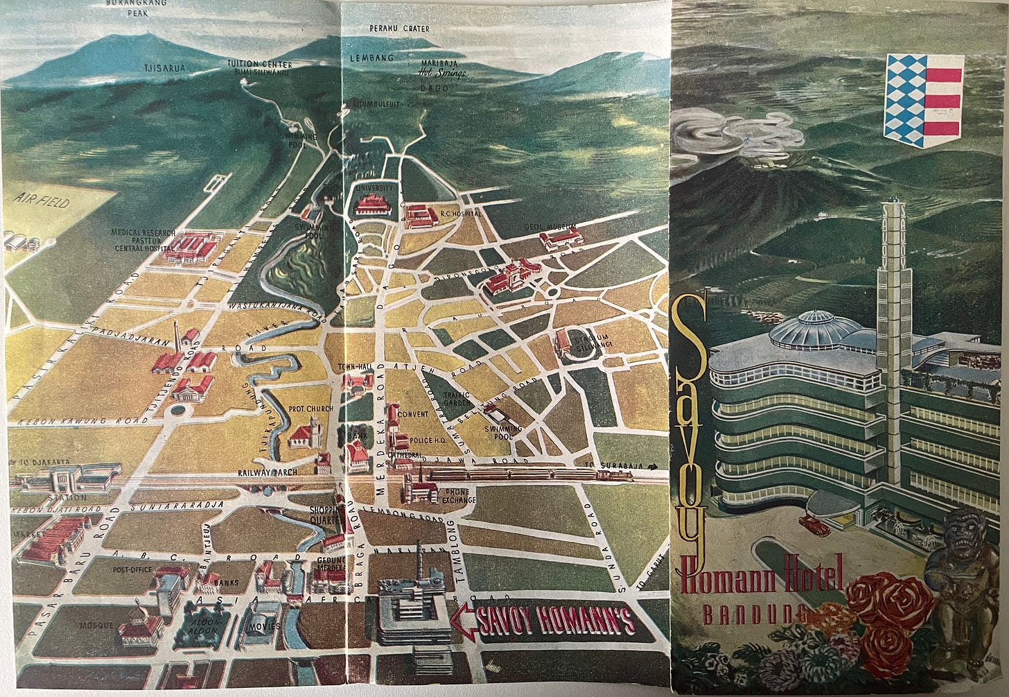 Her itinerary indicates that they stayed at the Savoy Homann Hotel in Bandung. A brochure from the hotel was in her files.