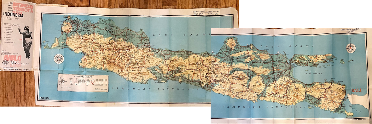 K had a large, detailed map of Java in her files. I had to spread it out on the floor to take a picture. It helped me trace the route they had taken.