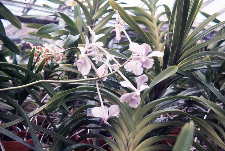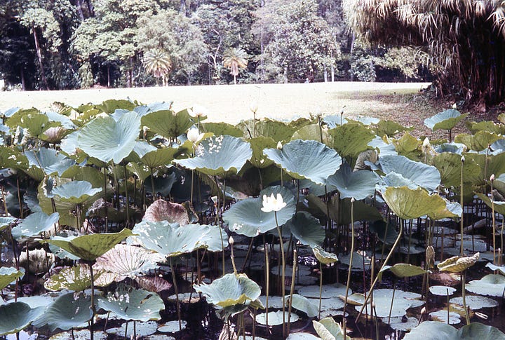 The tropical gardens at Bogor were beautiful. A summer palace is there. The orchid house has many plants—not too many in blossom. Fetzners bought avocado pears—gave us two.