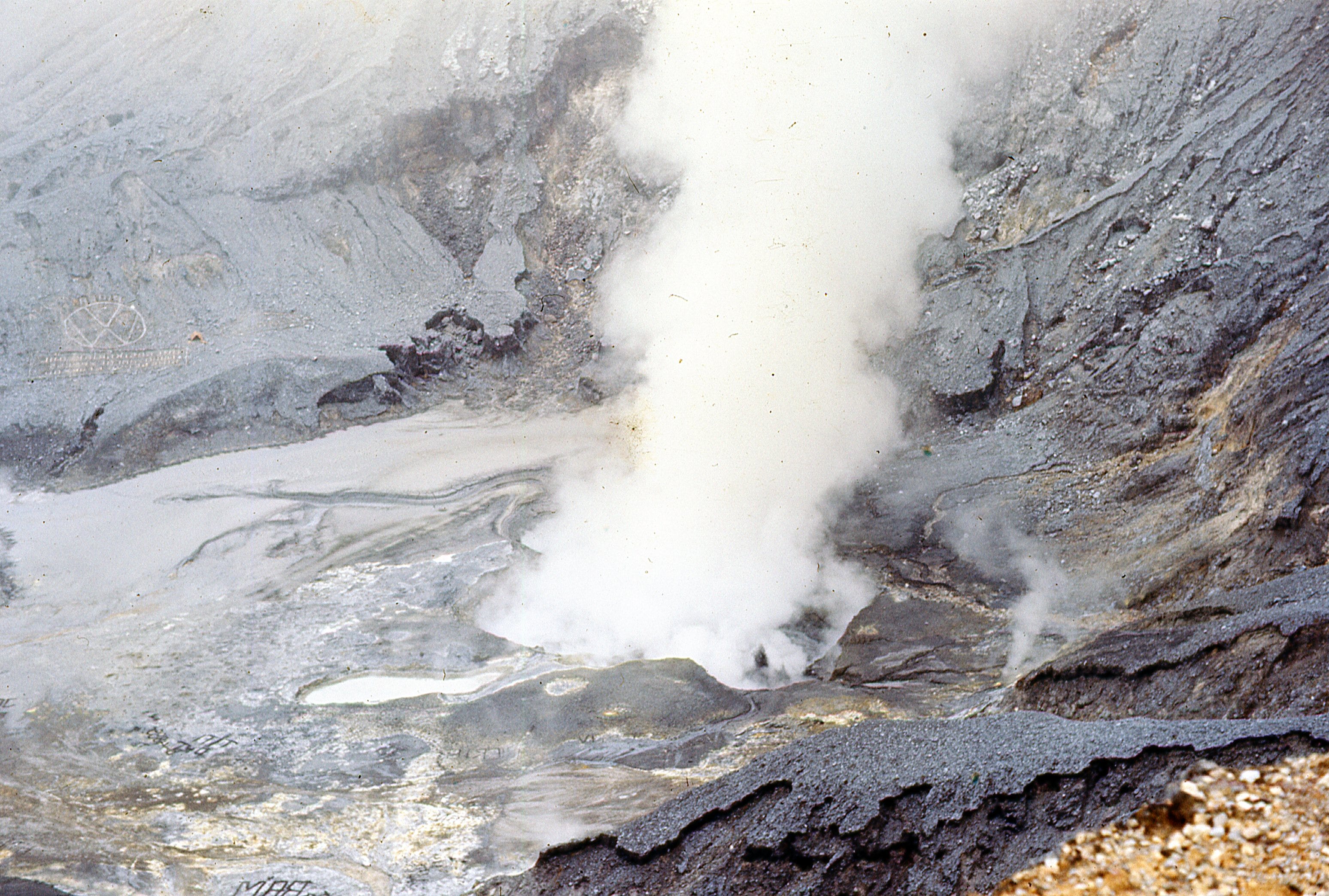 We had no guide and a driver who spoke little or no English. First we went to a volcano northeast of Bangdung. It is forecast that it will erupt again in July of this year—1970. The elevation is about 5500 feet. It bubbled up and let off steam.